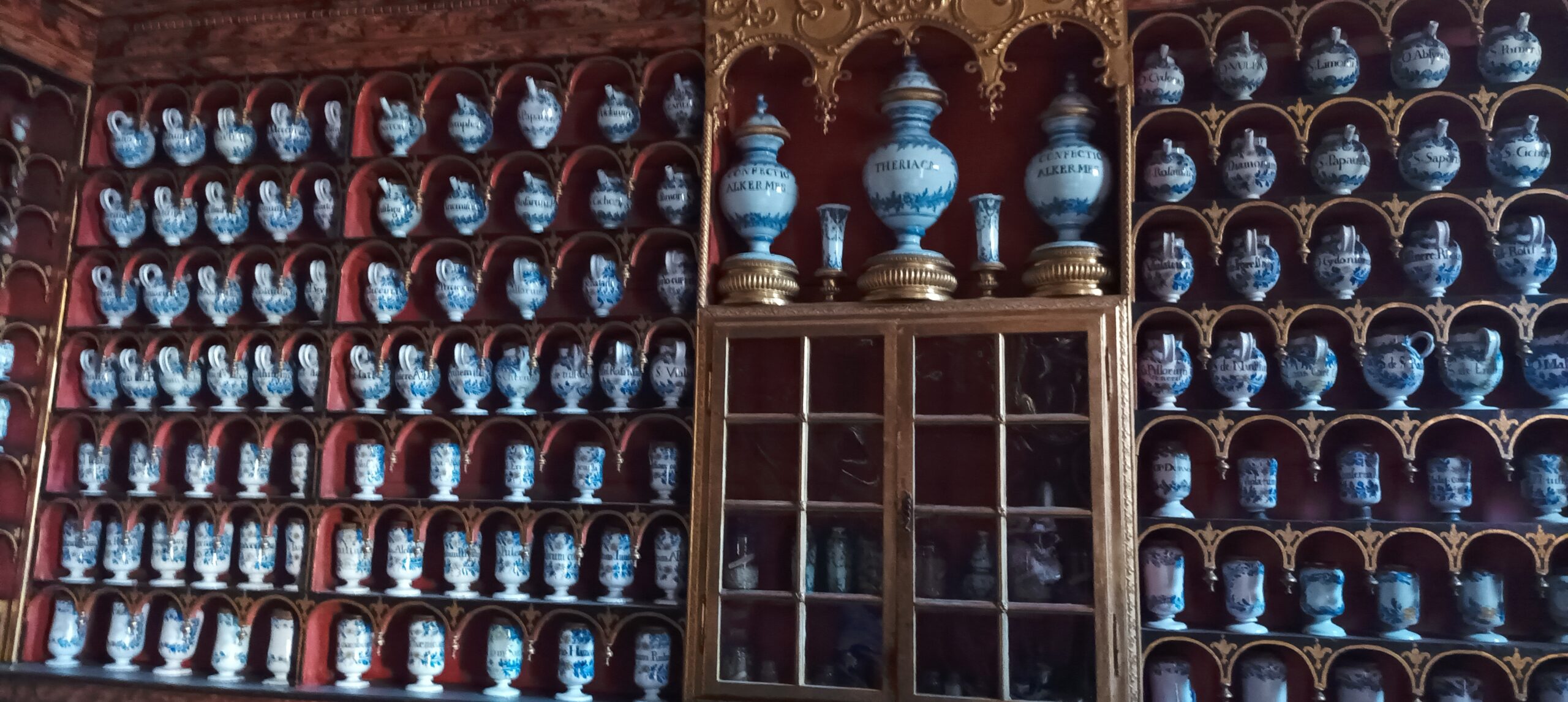 Dernière visite à caractère historique: la pharmacie de l’hôpital admirablement conservée qur B. Lapierre a pu nous faire voir. Tellement jolie qu’elle a donné lieu à des scènes de film !